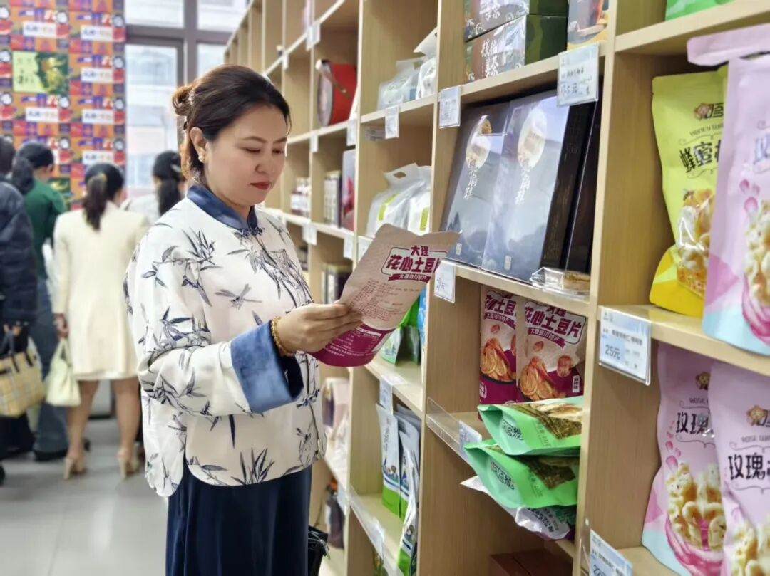 在大理州第三站,大家走访了“大理高原农特产品展示中心”。中心里丰富多样的特色产品让红河州女企业家们纷纷驻足,企业负责人李琳女士介绍到:公司成立以来,发挥供销系统的组织优势,以持续做好“土特产”文章为导向,以大理州优质农产品批发为主体业务,充分发挥了供销系统在农产品流通中的主力军作用,提升了社有企业为农服务的综合实力和水平。大理的高原农特产品的开发经验让红河女企业家们纷纷赞赏,大家表示希望两地的特色产品能够相互推广,搭建长期友好的合作机制。